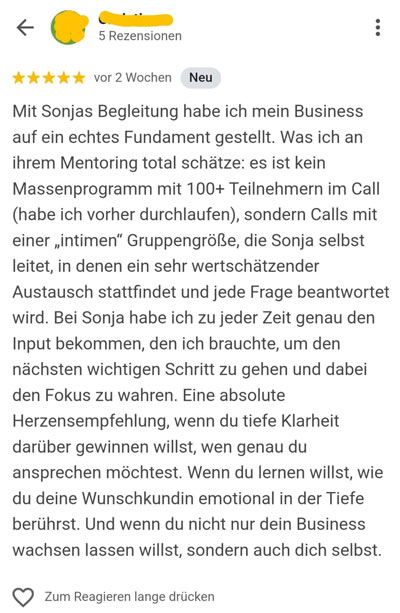 Ich hab das auch probiert und über 180.000 Euro in Business-Coachings investiert, weil ich mich online bis 2019 null auskannte, um zu bemerken, dass sich alles in mir zusammenzieht und mir so viel davon komplett widerstrebt.