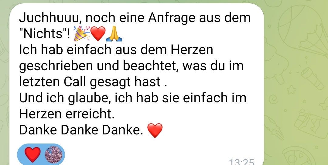 Die Bonuscalls gibt es dauerhaft als Aufzeichnung im Mitgliederbereich. Diese Termine werden ebenfalls rechtzeitig über Telegram kommuniziert.